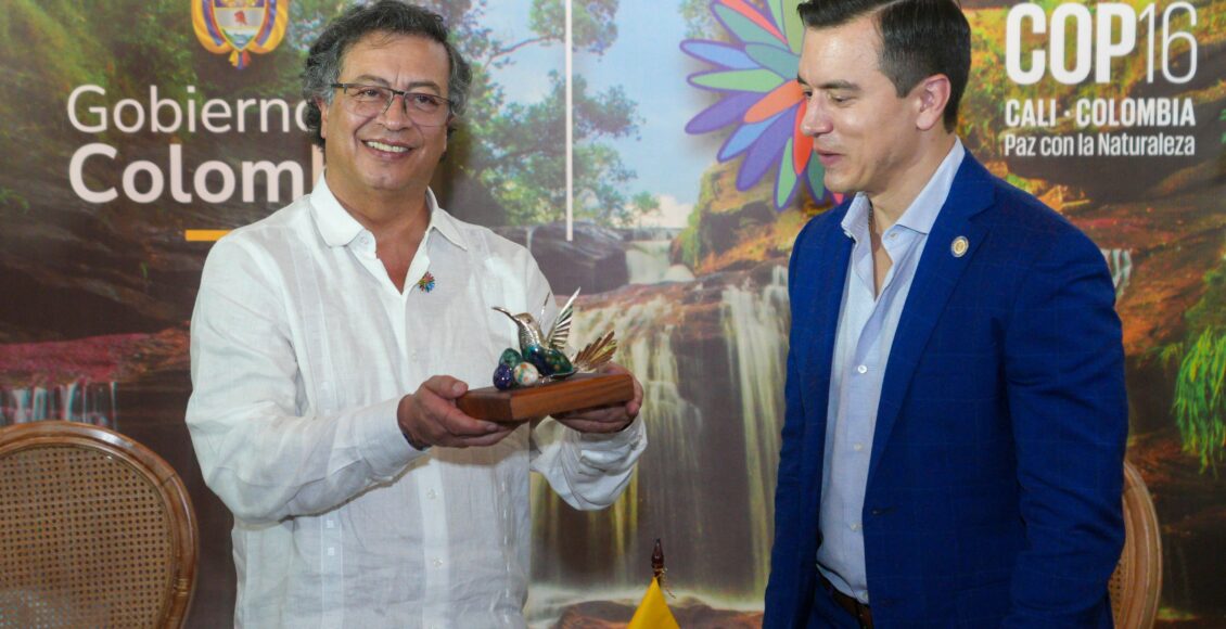 El presidente Daniel Noboa participó hoy, martes 29 de octubre de 2024, en la Conferencia de las Naciones Unidas sobre Biodiversidad (COP16), que se realiza en Cali, Colombia. Al final del encuentro internacional, tenía previsto reunirse con su par de Colombia, Gustavo Petro.