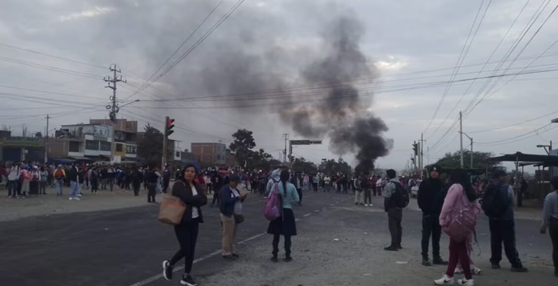 La carretera Panamericana Norte, a la altura de Virú, en la región norteña de La Libertad, continúa tomada por manifestantes en protesta contra el aumento de la inseguridad. La medida de fuerza, que inició la noche del domingo 27 de octubre y se ha extendido hasta hoy lunes, incluye el bloqueo de la vía con objetos, neumáticos en llamas y una marcha violenta para exigir una respuesta eficaz a las autoridades ante la creciente criminalidad en la región.